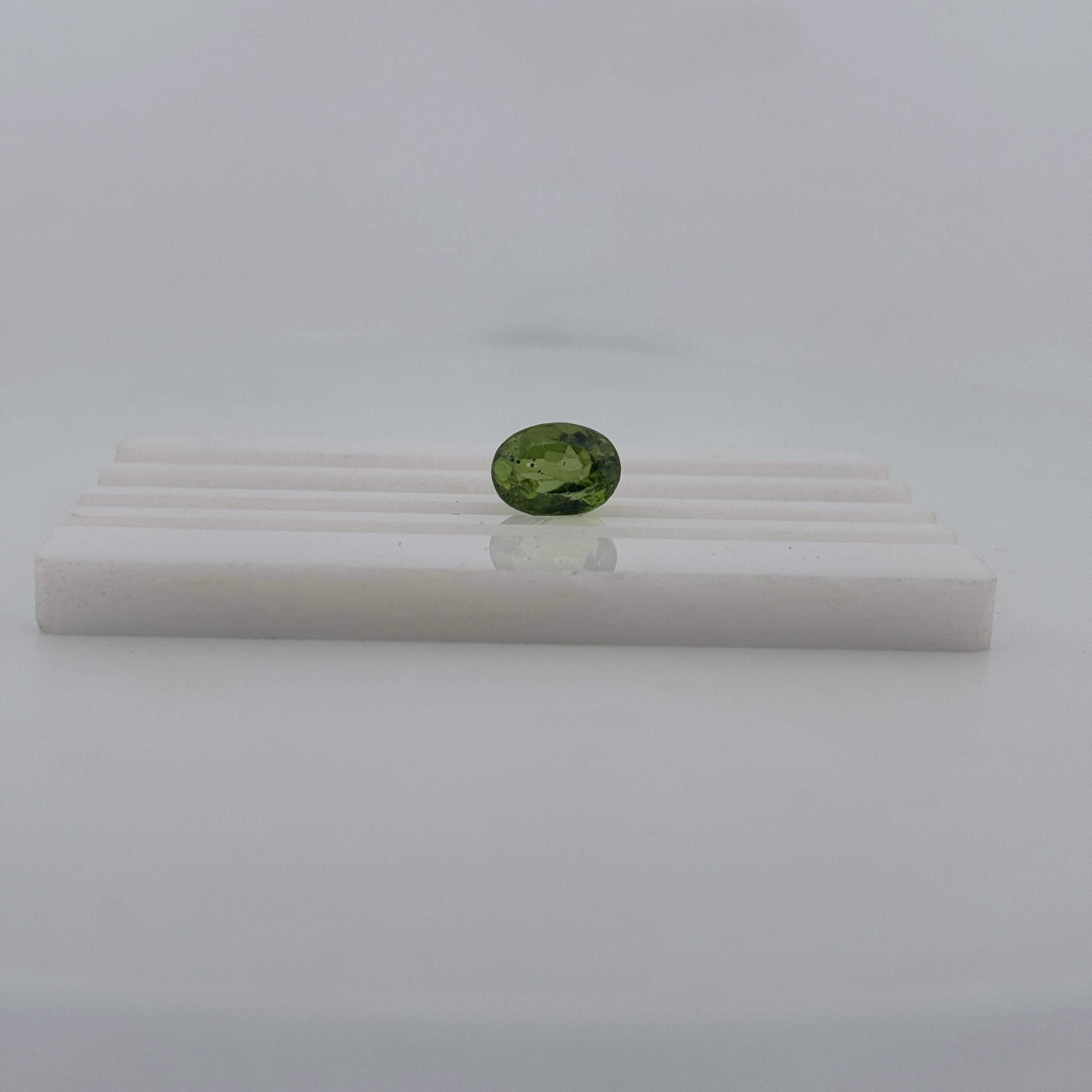 Peridot is admired for its soothing green color and timeless appeal, making it a versatile choice for rings, pendants, or custom fine jewelry pieces. Its balanced size offers both presence and wearability.