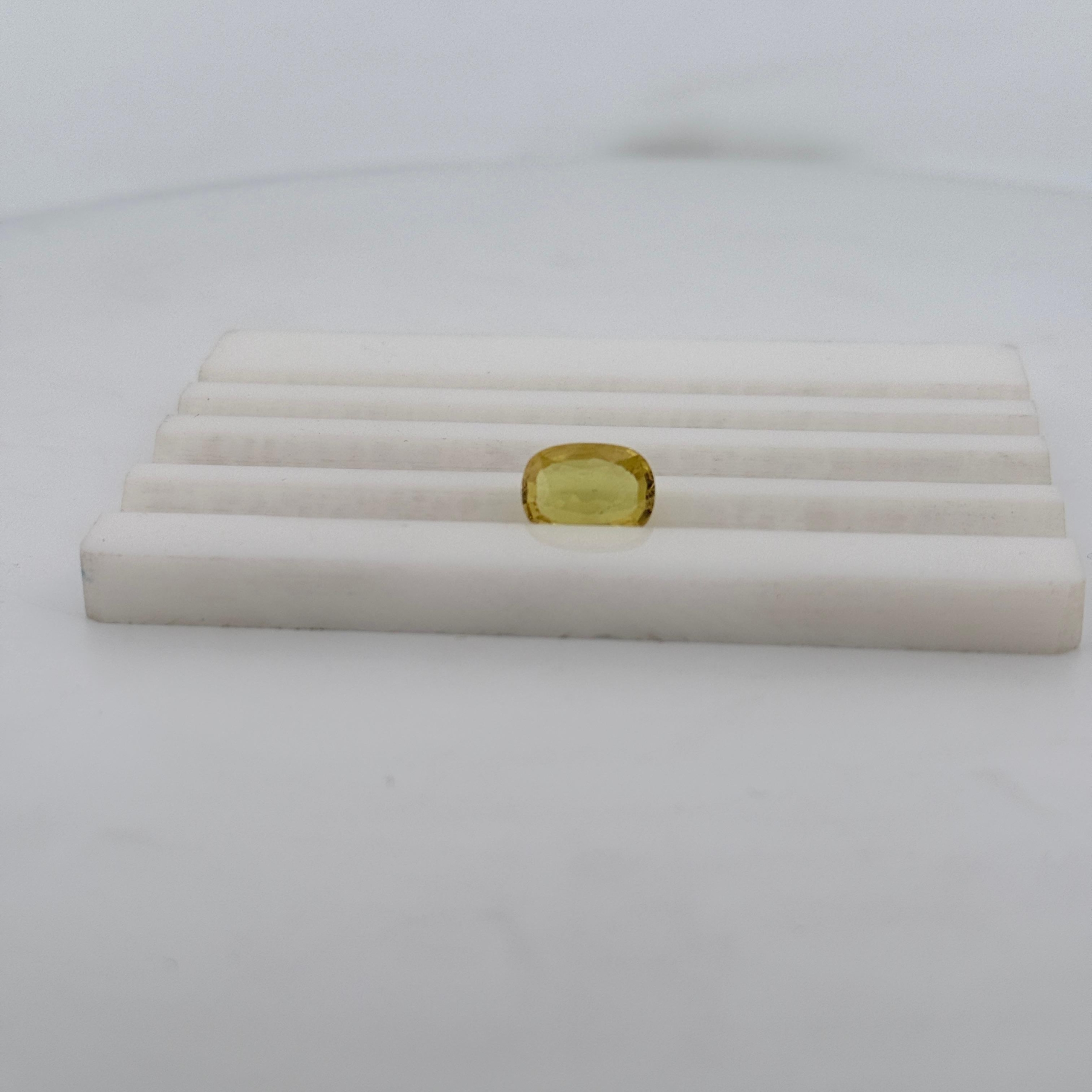 3.12 carat Sri Lankan Yellow Sapphire (Ceylon) featuring a bright lemon-golden hue with an elegant cushion cut, perfect for fine jewelry.